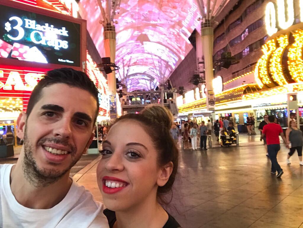 Ya al final de la tarde salimos para ir a la tienda de CocaCola y de M&M’s, nos comimos otro cacho de pizza gigante y ya de noche nos fuimos en bus al Freemont, la zona donde empezaron los casinos en Las Vegas.