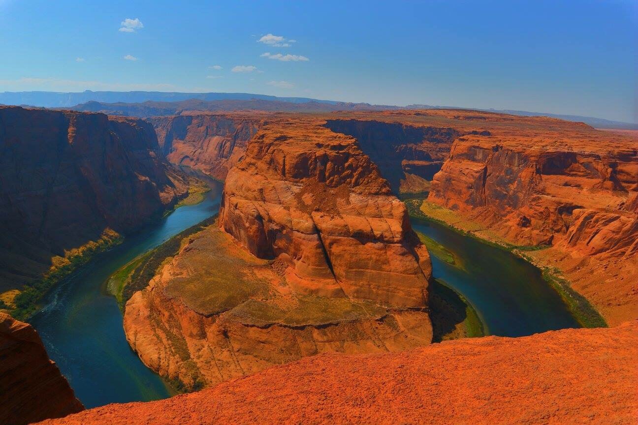 Visitamos por la mañana el Horseshoe Bend (segunda insolación del viaje por lo mismo, sol de justicia sin una sola sombra y a casi 50 grados de temperatura).