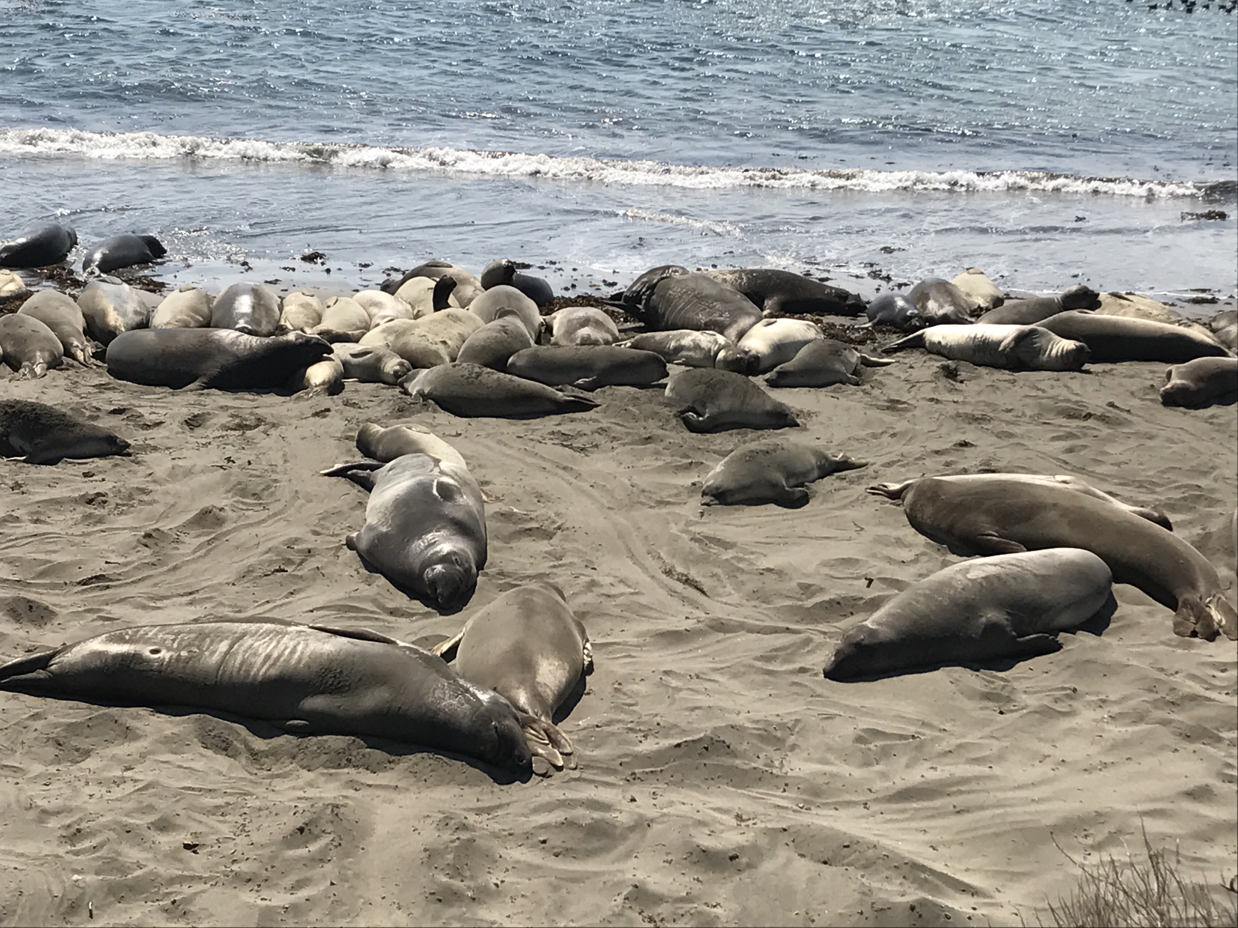 Desde aquí nos desviamos por la autopista, por el interior, y ya enganchamos de nuevo la costa en San Simeón, donde hicimos una parada para ver la colonia de leones marinos en su playa Arenas Blancas. Cada día disfruto más viendo a los animales en su hábitat.