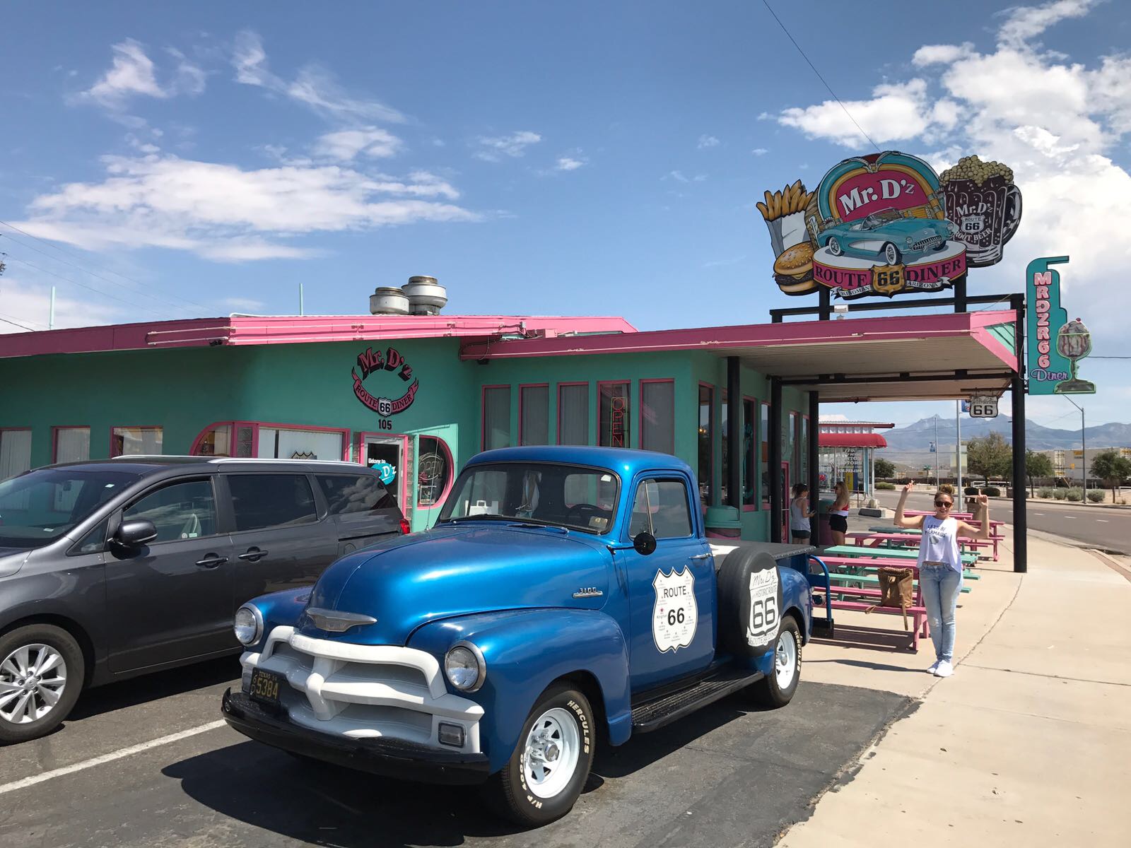 Kingman (a 1h45min de Las Vegas) tiene el típico bar de los años 80 americano, para comer y tomar batidos, el Mr. DZ. También está el museo de la Ruta 66 y la Locomotora de Santa Fe.