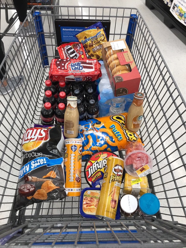 También os dejo la fotito de la compra que hicimos según salimos de Las Vegas en el bendito Walmart, que solo con las guarradas que compramos nos apañó las horas de coche y picoteo.
