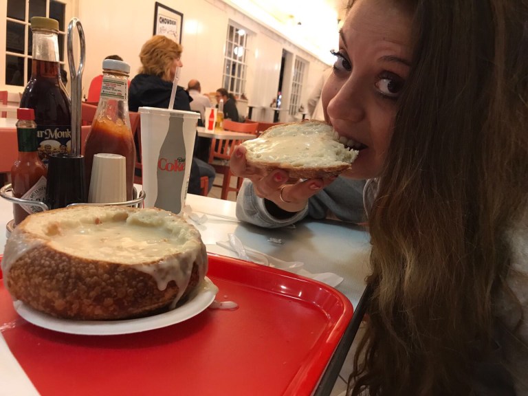 Nosotros la excursión a Alcatraz la hicimos a última hora. Ya nos estaba haciendo fresquito y en el ferry de vuelta, ya de noche, más frío teníamos aún. Fue el momento perfecto para ir a probar la famosísima Clam Chowder, que es una sopa/crema de almejas riquísima!!