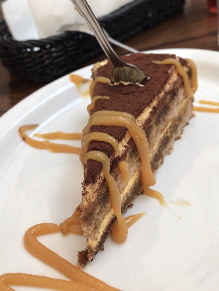 Nosotros comimos en una pizzería super bien y de precio mejor aún. El nombre del sitio era Gusto Dominium, y aun que a las pizzas no me dio tiempo a hacerles foto, el postre pintaba así de bueno: