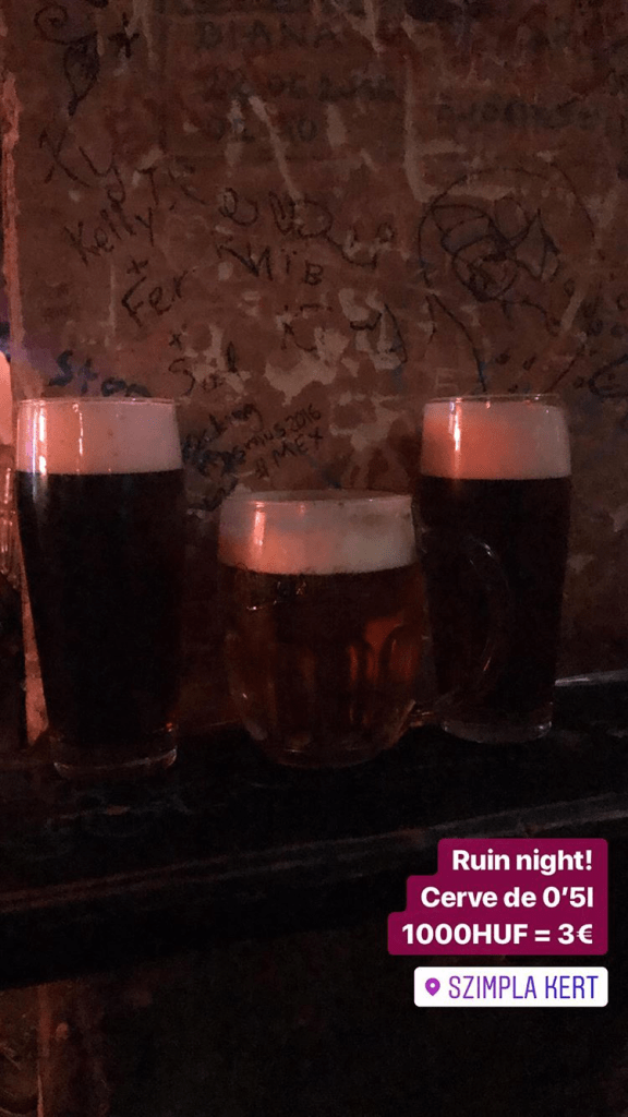 Una pinta cuesta 3€ por ejemplo en el Szimpla Kert, que es el Ruin Pub más famoso, así que yo creo que merece la pena salir a disfrutar del ambiente nocturno.