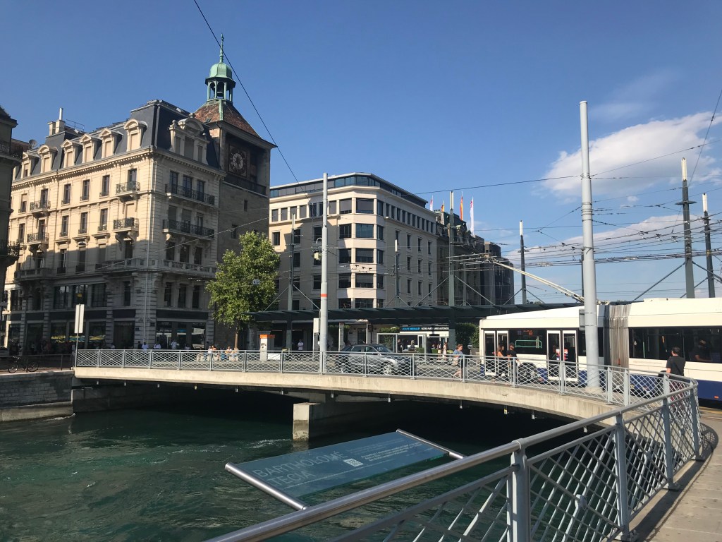 Hay una pequeña isla en medio del río Ródano, y el puente que lo cruza consta de gran importancia. Y es que cuando os hablaba de historia anteriormente, como dato os diré que este puente fue creado por Julio César en el año 58 a.C. A partir de aquí Ginebra se convirtió en un punto importantísimo de comercio para Europa.