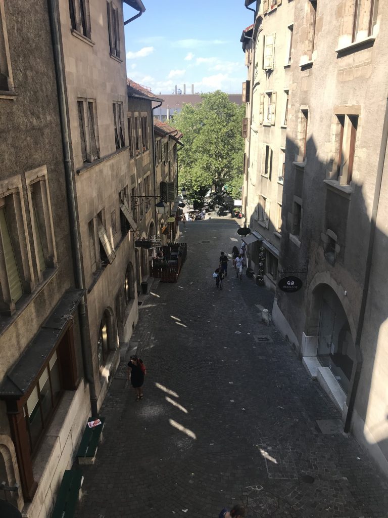 El casco antiguo es un «must» en vuestra visita a Ginebra. Pasear por sus calles llenas de glamour y tiendas caras, las casitas típicas suizas, las relojerías, un gran número de cafeterías y bares, y si os hace buen tiempo (como me hizo a mí) veréis como los suizos disfrutan del ambiente callejero.