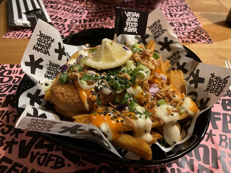 40. Cenar en un vegano, pero no en un vegano cualquiera, sino en Vegan Junk, un restaurante del nuevo concepto fast food vegana. Y es que si Barcelona te ha parecido moderna y reivindicativa, este es el remate para que te des cuenta de que ser carnívoro es sólo una fase.