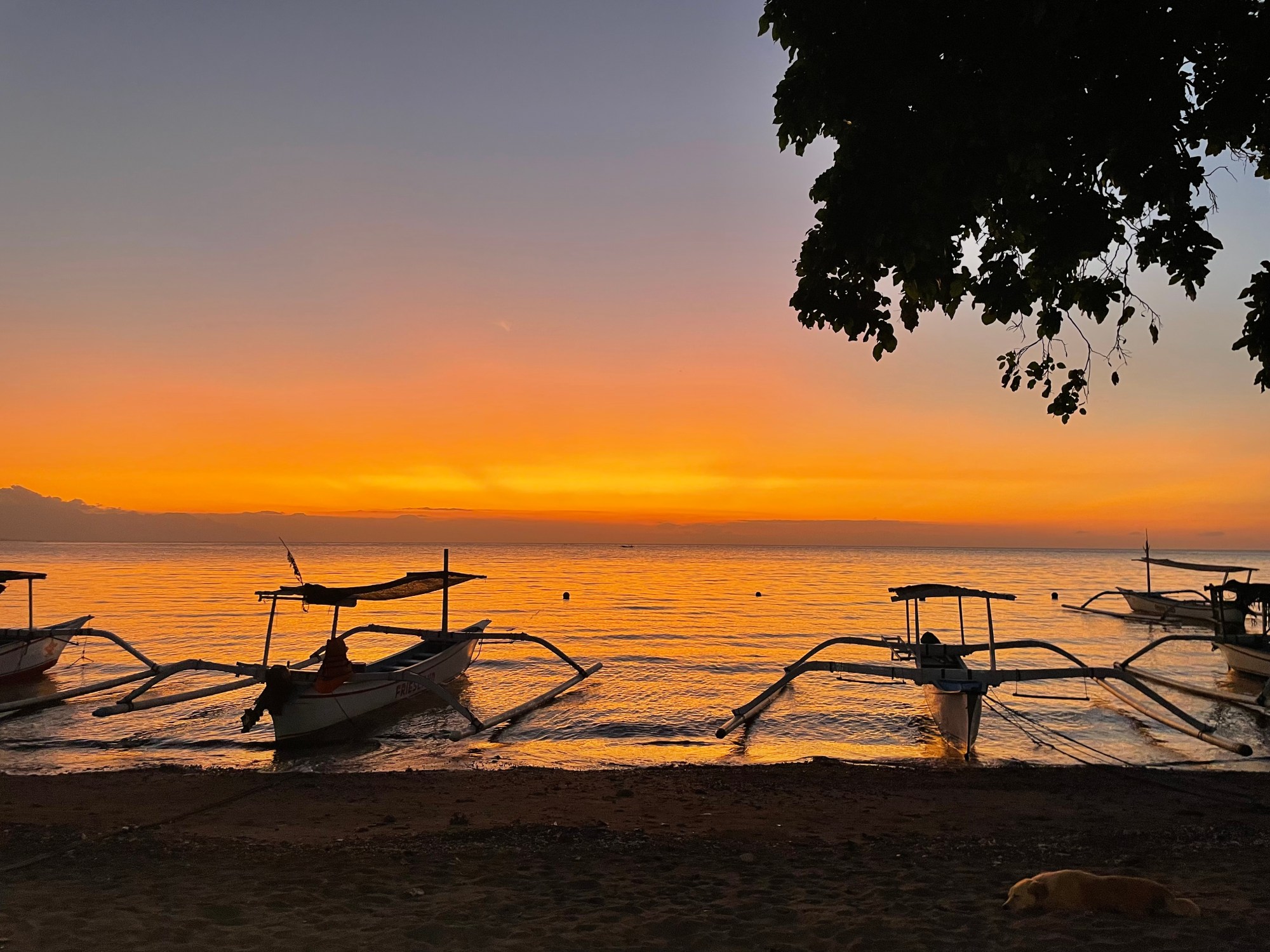 Ubicada en el norte de Bali, Lovina es una zona famosa por sus tranquilas playas de arena negra y los avistamientos de delfines al amanecer, los cuales NO recomiendo. Es una zona sobre todo para estar de chill y descansar sin el bullicio del turismo. Uno de nuestros mejores atardeceres fue aquí.